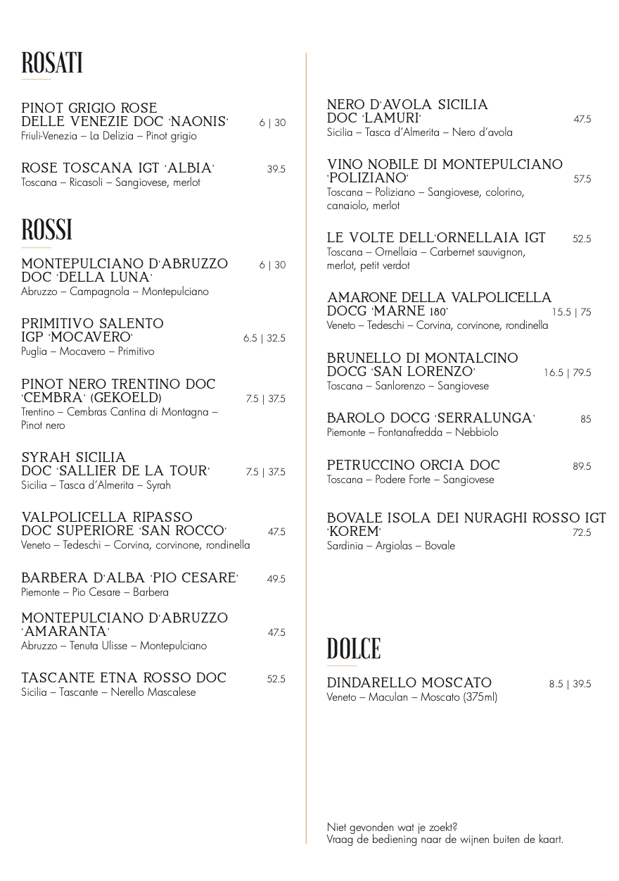 Als geliefd Italiaans restaurant in Haarlem bieden wij een verfijnde mix van traditionele smaken en moderne creativiteit. Onze menukaart wisselt met de seizoenen en barst van authentieke Italiaanse gerechten, van heerlijke aperitivo als focaccia genovese of bruschetta, tot gevulde gnocchi of risotto barbabietola als smaakvolle primi.